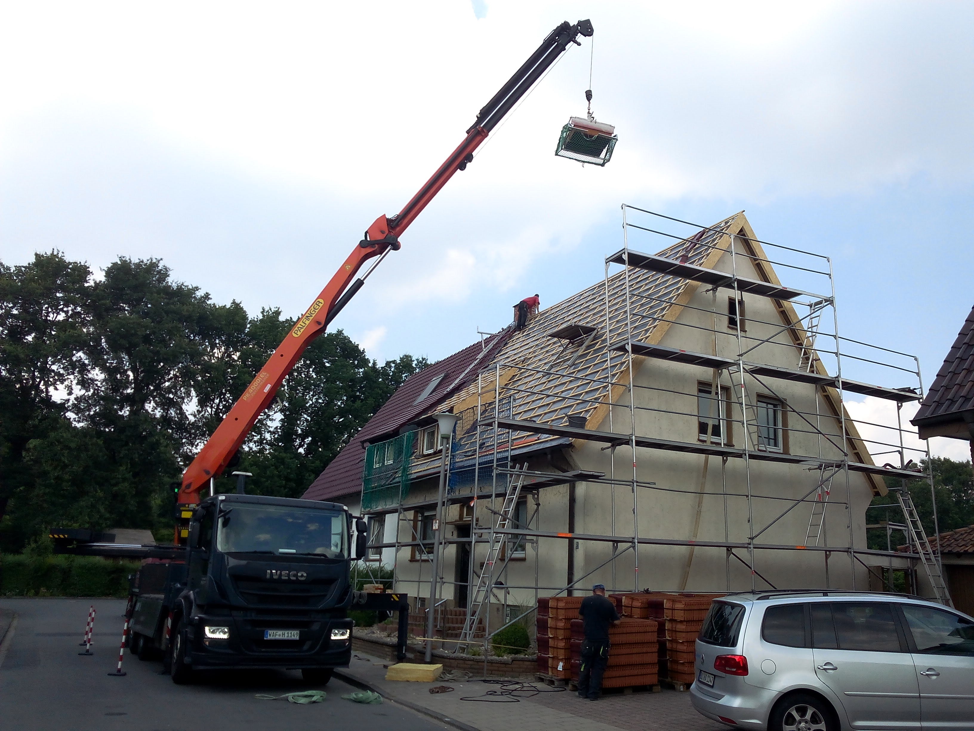 Sprechen Sie uns an, wenn Sie zum Beispiel Hilfe beim Materialtransport auf das Dach oder Aufstellen einer Treppenanlage benötigen.